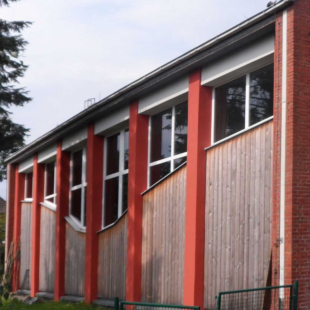 Im ersten Baubschnitt wurde das ca. 100 Jahre alte Schulgebäude für die Bedürfnisse der neuen Schulform saniert und umgebaut.