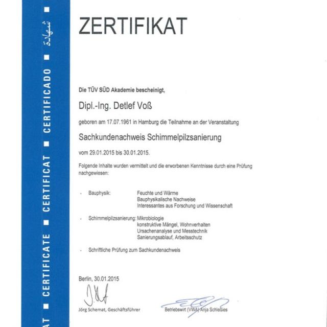 Sachkundige für Schimmelpilzsanierung