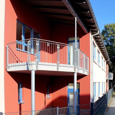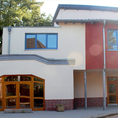 Sanierung, Bauen im Bestand eines Schulgebäudes im 1. Bauabschnitt. Erweiterung der denkmal-geschützen Schule, mit einem neuen Schultrakt. Planung und Erstellung unter Einhaltung von Brandschutzkonzept und den Anforderungen der Schulbaurichtlinien, sowie Gestaltung des Schulhofes und die energetischen Sanierung der Turnhalle, sowie Planung und Umsetzung einer Mensa.